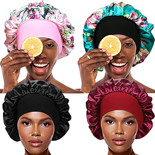 4 pezzi a fascia larga in raso Cap Sleep Cofano morbido notte sonno cappello perdita di capelli Cap salone cofano per le donne