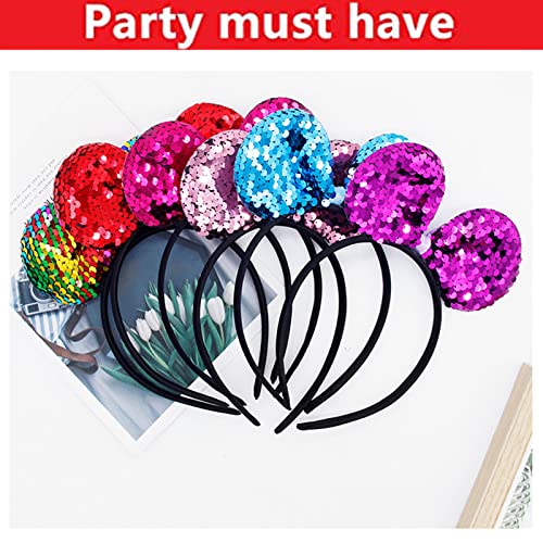 6 Pezzi Fascia Orecchie da Topo, Topolino Minnie Mouse Fascia, Fascia Disney, Cerchietto con Fiocco da Cartone Animato per Ragazze, Adatto per Compleanni, Feste di Carnevale (Sei Colori)