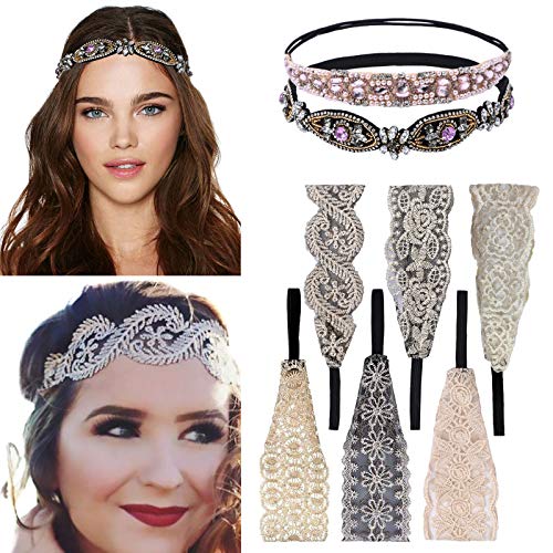 Contenuto della confezione: la confezione include 8 fasce per capelli (6 fasce in pizzo e 2 fasce per capelli con perline. Abbiamo 8 diversi modelli di fasce per capelli, in grado di soddisfare le vostre varie esigenze.