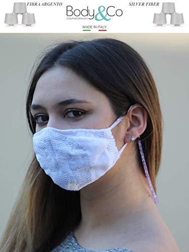Fascia protettiva viso bocca naso in tessuto lavabile e riutilizzabile, batteriostatico e idrorepellente waterproof, con fibra d'argento antimicrobica, trattamento antibatterico.