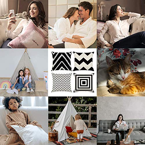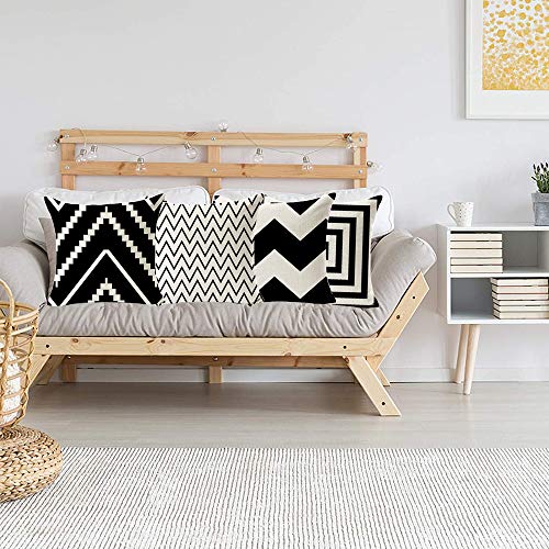 CCYY 4 pezzi federa geometrica, federa per cuscino in lino, federa corta quadrata, federa geometrica nera e bianca, per camera da letto, divano, 18 x 18 pollici