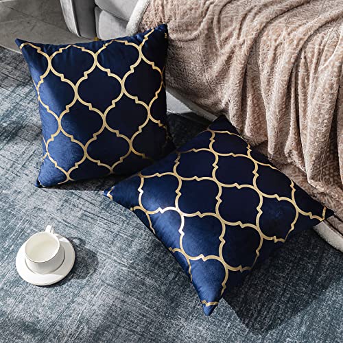 2 Pezzi Federe Cuscini 45x45 cm Federe per Cuscini Quadrate in Morbido Velluto con d'oro Ricamo timbratura Quadrifoglio Decorativi Moderni Copertine per Cuscini per Casa Ufficio Giardino Esterno