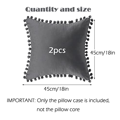 2 Pezzi Federe per Cuscini, Decorativi in Velluto 45x45 cm Fodera per Cuscino,Morbidi di Velluto con Pom Poms in Tinta Unita Cuscino Eleganti e Moderni per Casa Camera da Letto Salotto (Grigio scuro)