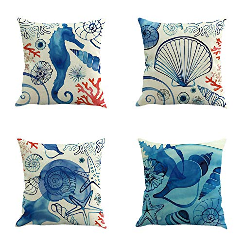 Set Di 4 Pezzi Federe Cuscino Letto Cuscini Decorativi Copricuscini Decorativi In Cotone E Lino Federa Con Cuscino Per Cavalluccio Marino Shell Per La Decorazione Di Home Office Per Auto 45X45Cm