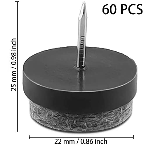 60 Pezzi Feltrini Gambe di Sedie da Tavolo, Feltrini Sedie con Chiodo, Scivoli in Feltro con Chiodo, Protezioni per Pavimenti per Gambe di Sedie Spesse Antiscivolo, per Mobili, Sedie, Gambe Tavoli
