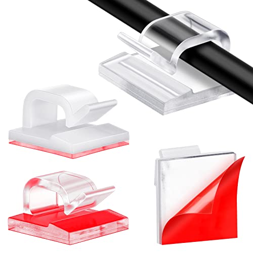 100 Pezzi Clip Fermacavi Adesivi, Organizzatore di Cavi Porta Cavi Scrivania Cavi Organizer per la Decorazione Natalizie, Luce Fata, Muro di Foto(60 Trasparente, 40 Bianco)
