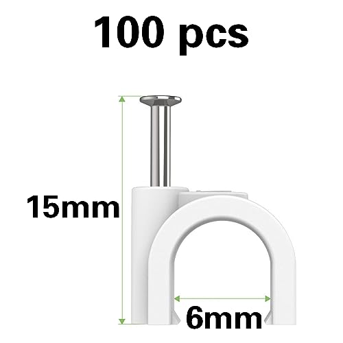 ✔Riceverai 100 clip per chiodi in acciaio, bianche, con un diametro della fessura di circa 6 mm, adatte per fissare cavi con un diametro di circa 6 mm o un diametro totale di circa 6 mm.