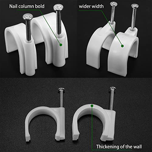 200 Pezzi Fermacavi,Fermacavi Muro,Fermacavo con Chiodo,Clip Fermacavi Muro Rotondi Bianchi con Chiodo 4 Diverse Dimensioni,Forti Morsetti da Parete,per cavi Ethernet,cavi telefonici,USB