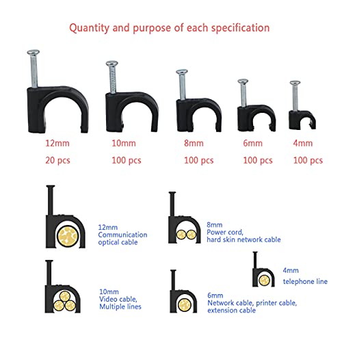 Materiali di alta qualità: la clip per cavi è realizzata in plastica PE resistente di alta qualità, che ha un buon isolamento, resistenza alla corrosione e all'invecchiamento e può proteggere il cavo. I chiodi in acciaio zincato sono robusti e durevoli, non si piegano facilmente e non arrugginiscono facilmente, adatti per interni ed esterni.