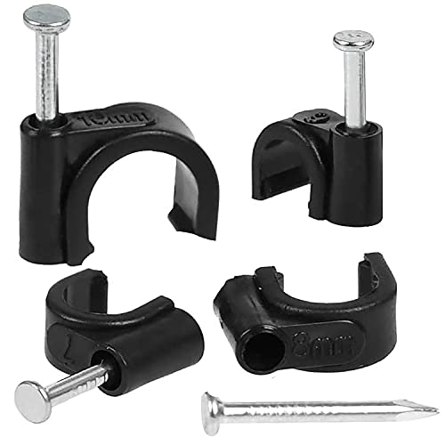 400 Pezzi Fermacavo con Chiodo,Clip per cavi Rotondi (6/7/8/10 mm), Fascetta per Cavi in PE, Chiodi Fermacavo per Cavi Ethernet, Telefono, TV, cavo USB (Nero)