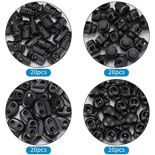 80 Pezzi Fermacorda a Molla, Serrature a Molla per Cordini, Fermacorda Scorrevole in Plastica, Ricambi Chiusura Zaini, Morsetti per Cavo, Scarpe - Foro Singolo 5 mm, Doppi Fori 5mm