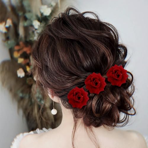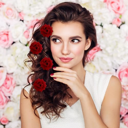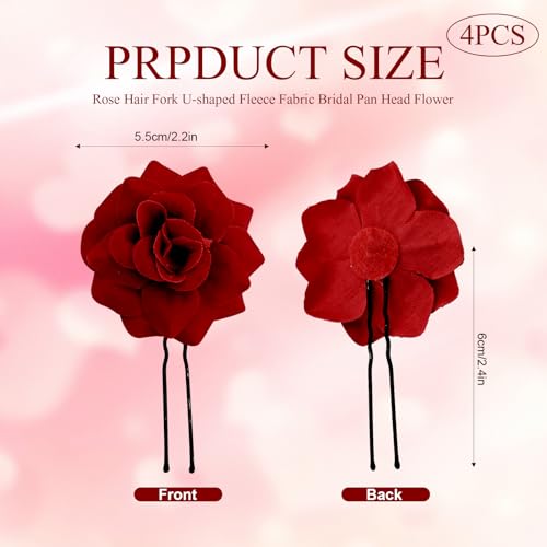 4 Pezzi Fermagli per Capelli Rose,forcine per capelli a forma di U a forma di rosa,accessori per capelli per feste,Clip di Capelli a Forma di Fiore a Forma di U per Capelli per donne (Rosso)