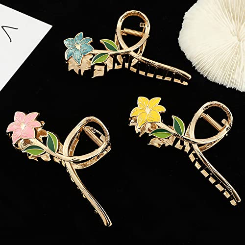 4 Pezzi Fermagli per Capelli in Metallo a Forma di Fiore per Signore, Mollettone Capelli Donna Pinza Grande, Eleganti Fiore Artiglio, per Ragazze Femminili con Capelli Ricci Spessi e Sottili