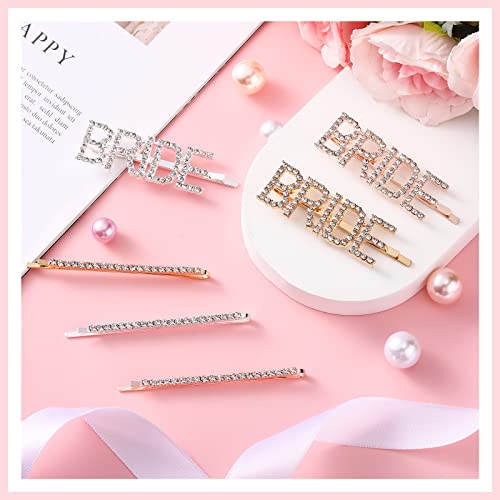 Forcine a tema matrimonio: la confezione include 12 fermagli per capelli da sposa in 2 stili e 3 colori, uno stile è decorato con la scritta [BRIDE] e l'altro stile è più semplice decorato solo con strass, quantità e stili sufficienti, sufficienti per la tua acconciatura fai-da-te al matrimonio e la decorazione quotidiana dei capelli
