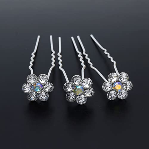 ✿ Materiale di alta qualità: il fiore del fermaglio per capelli da sposa a forma di U è realizzato in cristallo e il fermaglio a forma di U è in lega, con pregevole fattura, elegante e bella
