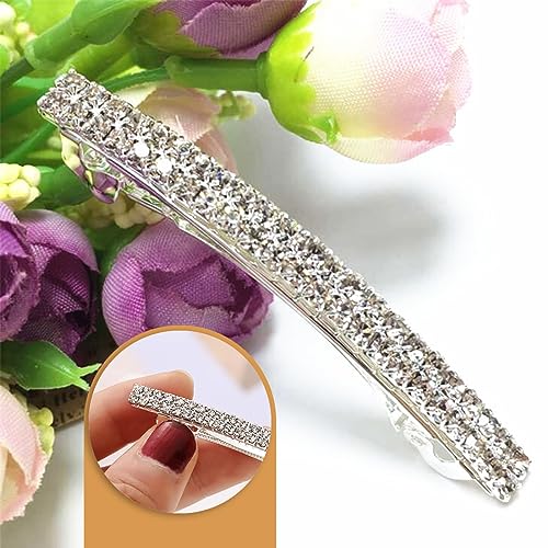 【Lista di imballaggio】 Composto da 4 pezzi di fermagli per capelli con strass perfetti, la dimensione è 6,5 * 0,6 cm, i fermagli per capelli in cristallo di strass lucido sono semplici ed eleganti, hanno quantità e varietà sufficienti, sufficienti per la sostituzione o l'uso quotidiano.