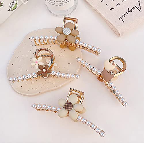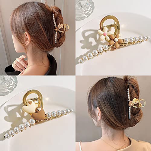 4 Pezzi Fermaglio Capelli Donna, Mollette per Capelli Grande, Fermagli per Capelli per Capelli Spessi, Pinze per Capelli per Antiscivolo in Metallo Perlato per Ragazze