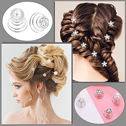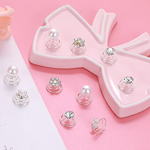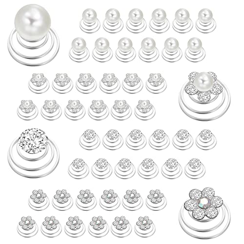 48 Pezzi Fermaglio per Capelli a Spirale Strass Perla Fermaglio per Capelli a Spirale Fiore d'Argento Fermaglio per Capelli da Sposa Accessori per Capelli Donne Ragazze Perline per Capelli a Spirale