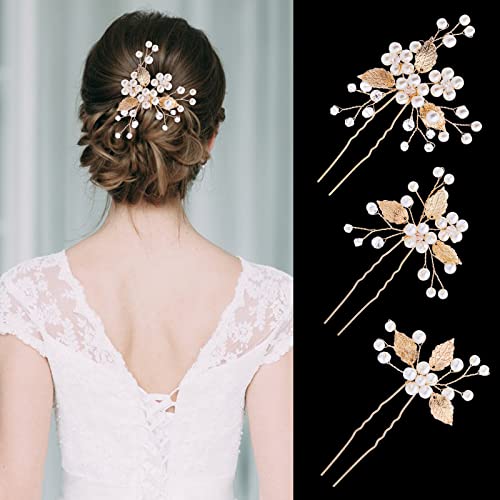 3 Pezzi Fermaglio Capelli Sposa Forcine per Capelli Fiore Oro Foglia di Perle Fermagli per Capelli da Sposa Gioielli Testa Accessori Capelli Sposa Fiore Ragazze Fermacapelli Donna Acconciature Capelli