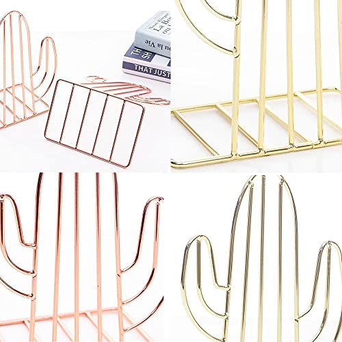 2 Pezzi Fermalibri a Forma Cactus, Fermalibri In Oro Rosa, Reggilibri Antiscivolo, Reggilibri In Metallo, Porta Libri Per Ufficio, Fermalibri Decorativi, Adatto Per Uffici, Scuole, Librerie
