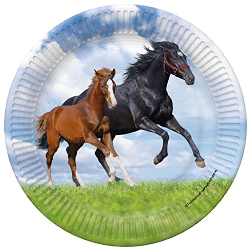 8 piatti di carta con motivo cavalli e puledri, 23 cm.