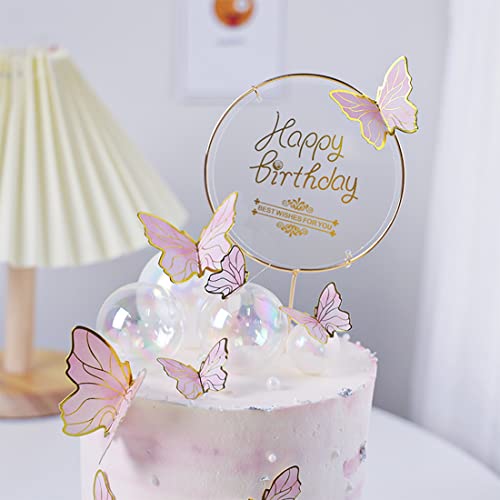 MATERIALI AFFIDABILI: Le decorazioni per torte a farfalla sono realizzate in carta per la pulizia ad alta resistenza che non si deforma e si può attaccare la farfalla direttamente alla torta. La decorazione per torta Happy Birthday è realizzata con bordo in metallo e pannello in acrilico, resistente e durevole, adatto;