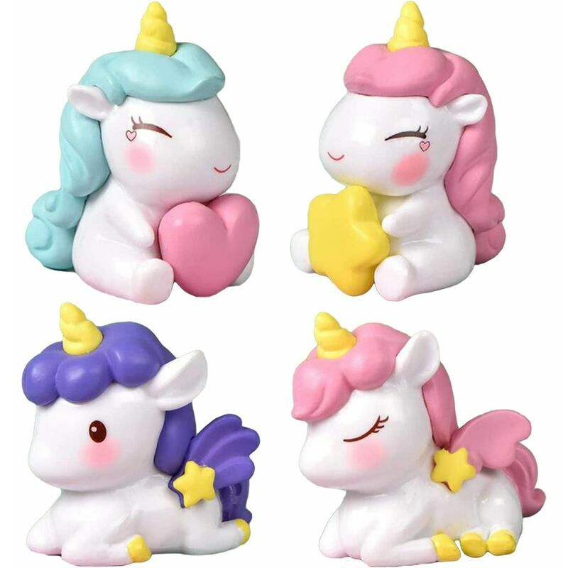 Le statuette di unicorno in miniatura misurano circa 4,3 * 5 cm Realizzate in resina, materiale ambientale Queste decorazioni di unicorno sono adatte per il cruscotto dell'auto, il desktop, la torta, la decorazione di micropaesaggi. L'ornamento di unicorno dal design carino renderà la tua auto o la tua stanza più calda e dolce. Queste adorabili sculture in miniatura di figurine di unicorno sono la migliore scelta regalo da inviare ad amici e parenti. Descrizione: Artigianato per la produzione fai-da-te, facile da usare, aumenta il divertimento della vita. Realizzato in resina sintetica, molto ecologico. Perfetto per qualsiasi giardino in miniatura, casa delle bambole o scena shadowbox. Questi ornamenti di unicorno sono adatti per il cruscotto dell'auto, il desktop, la torta, la decorazione di micropaesaggi. Facile da mettere sulla scrivania, sul cruscotto dell'auto, perfetto per l'esposizione sullo scaffale del negozio. Il pacchetto include: 4 statuette di unicorno fantastiche