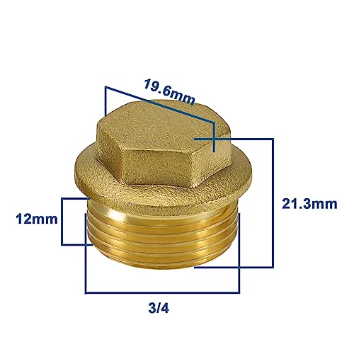 2 pezzi 3/4 "BSP Filettatura Maschio Tappo Tappo Terminale Tubo 3/4 "Ottone Maschio Tappo di Blanking Accessori per Tubo Collegamento Bagno Cucina Oro