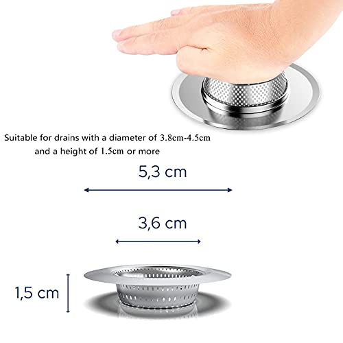 2 Pezzi Filtro da Lavello 2,16 " Accessori per lavelli Cucina Sink Strainer Acciaio Inossidabile Filtri per Lavandini Vasca da Bagno o lavelli da Cucina Per Filtri con Diametro Interno da 3,8 a 4,5 cm