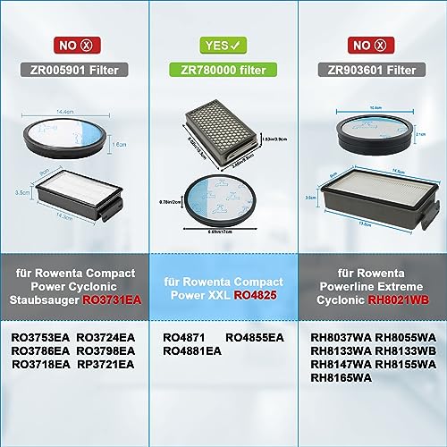 Modelli Compatibili: Filtro per Rowenta Compact Power XXL RO48xx Aspirateur, tels que RO4811EA RO4823EA RO4825EA RO4826EA RO4836EA RO4850EA RO4853EA RO4855EA RO4859EA RO4871EA RO4873EA RO4881EA RO4886E,sostituisce No.ZR780000