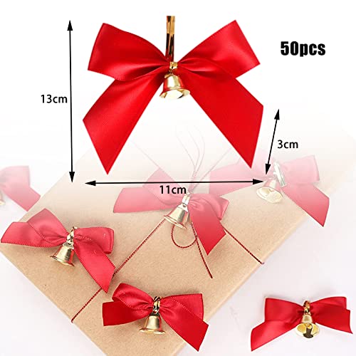 50 pezzi fiocco di natale rosso con campane, fiocchi di decorazione natale, fiocco albero di natale grande, rosse fiocco regalo, per albero di Natale, ghirlanda di Natale, decorazione regalo