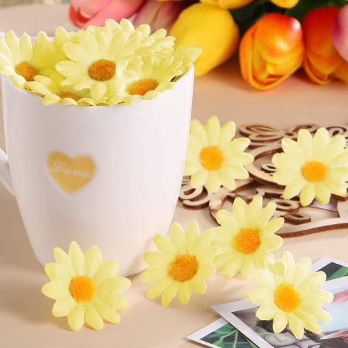100 Pezzi Fiori Decorativi Piccoli,Fiori Artificiali,Teste di Fiori Finti Seta,Girasoli Finti per Decorazioni,Girasole Finto, Adatti per Decorazioni Floreali, Fai da Te (Margherite Gialle)