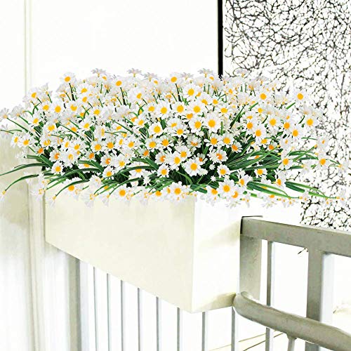 8 Pezzi Fiori Margherita Artificiali Finti Piante Artificiale Arbusti Ramo Resistente ai Raggi UV Balcone per Giardino Decorazioni Esterna della Cortile della Finestra di Casa (bianco-8 pezzi)