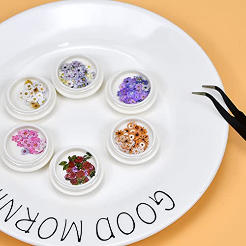 300 Pezzi Nail art Fiori Secchi, 6 Scatole 3D Floreali Adesivi Unghie Miste Fiore Nail Art per la Decorazione, Fiori Essiccati per Unghie Naturali Motivo Floreale Decalcomanie Unghie con Pinzetta