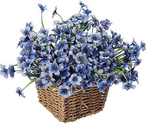 6 pezzi Fiori Viola Artificiali Finti Piante Artificiale Arbusti Ramo Resistente ai Raggi UV Balcone per Giardino Decorazioni Esterna Della Scatola di Del Cortile Della Finestra (Blu)