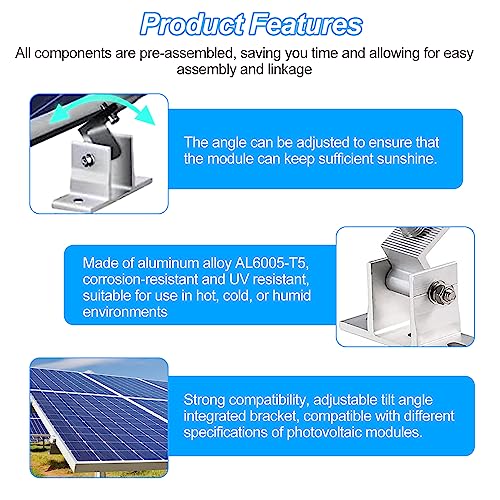 Materiale di alta qualità: Staffe per pannelli fotovoltaici è realizzato in lega di alluminio, grande capacità di carico e forte resistenza alla corrosione, durevole e sicuro da usare e resistente agli agenti atmosferici.