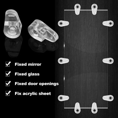 Ampia applicazione: il kit di clip di fissaggio in plastica è principalmente applicato per fissare schermi al vetro, alle finestre, agli specchi, alle porte in vetro, alle aperture delle porte degli armadi, tenere il vetro in posizione e impedirlo di muoversi e di cliccare, a una vasta gamma di usi e a un buon aiuto nella vostra vita quotidiana.