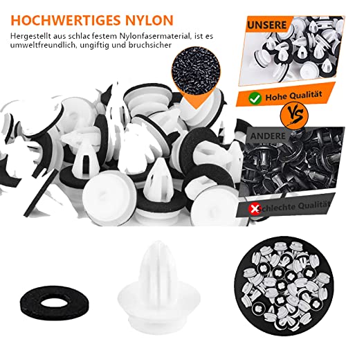 【Materiale di alta qualità】 Il set di rivetti è realizzato in plastica di alta qualità, non facile da invecchiare, con buona tenacità, durezza e proprietà meccaniche equilibrate. Non facile da rompere e rompere durante l'uso e dotato di spugnetta per una migliore fissazione.