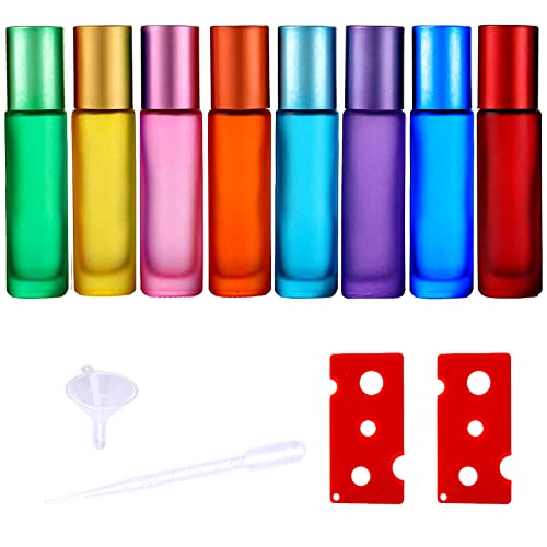 NA 8 Pezzi Flacone a Rullo di profumo di Olio Essenziale di Vetro, Flacone di Olio Essenziale di Vetro da 10 ml, Bottiglie di Rullo di Oli Essenziali Ricaricabili
