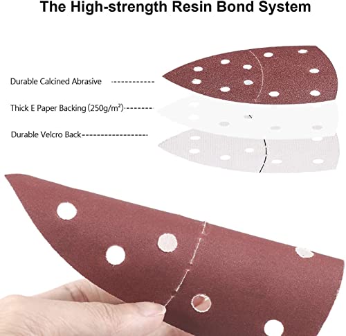 Materiale dei Fogli Abrasivi - La levigatrice a delta, grazie all'ossido di alluminio di alta qualità, è durevole e antistatica, lunga durata. Strato di carta vetrata robusto e rimane stabile anche in caso di lavori di levigatura più lunghi con bassa usura e buona scelta per la levigatura e la lucidatura