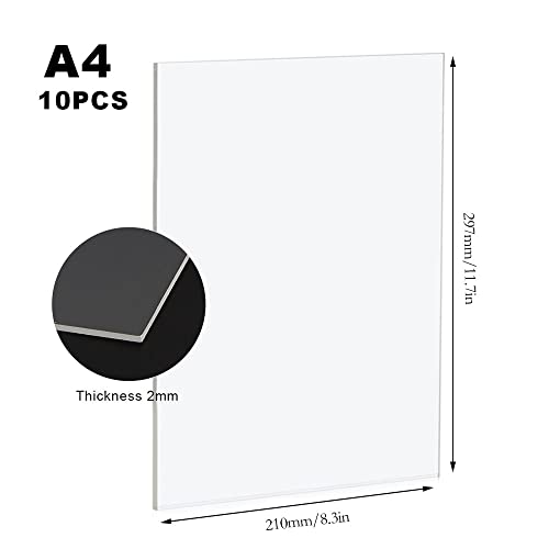 10 Pezzi Fogli Acrilici Trasparenti, Pannelli in Acrilico A4, 2mm Pannello Acrilico per Cornice, Vetro Acrilico per Display, Foto, Visualizzazione di Progetti, Pittura