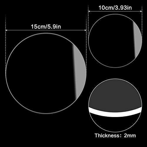✿【Combinazione acrilica da 10 cm 15 cm】:La confezione contiene 8 pezzi di 10 cm di diametro e 4 pezzi di pannello acrilico con un diametro di 15 cm, diverse dimensioni possono soddisfare meglio le diverse esigenze di design, le dimensioni extra large sono molto adatte a tutti i tipi di artigianato fai-da-te, 12 fogli acrilici trasparenti soddisfano le tue esigenze condividere con gli amici.