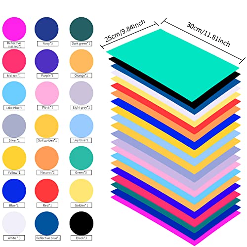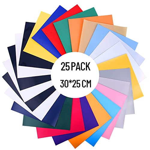 25 Pezzi Fogli Adesivi in Vinile,JOSPL Fogli in Vinile 21 Colori 30CM X 25CM Fogli Permanenti in Vinile Foglio di Plotter Vinile Adesivo Confezione per Pressa a Caldo o Casa Ferro su T-Shirt & Tessuti