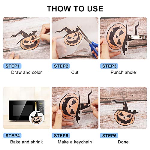 Divertiti con Il Fai-Da-Te: Il plastica termoretraibile nel Kit di Fogli di Plastica Termoretraibile è vuoto, puoi realizzare piccoli oggetti artigianali e regali, oppure puoi disegnare i tuoi modelli preferiti su di esso. Molto adatto per accessori fai da te, come: portachiavi, gioielli, etichette regalo, segnalibri e decorazioni, ecc.