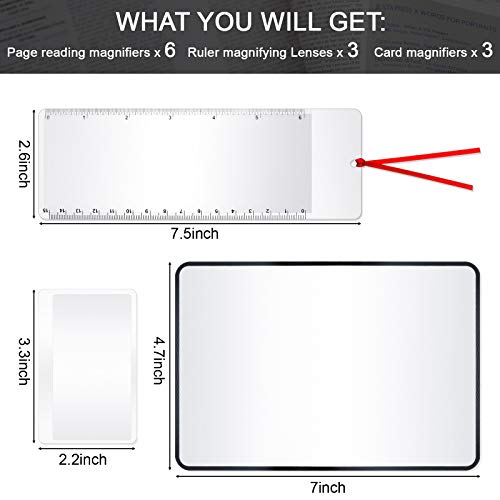 Il pacchetto include: riceverai 12 lenti d'ingrandimento, incluse 6 lenti d'ingrandimento per la lettura di pagine, 3 lenti d'ingrandimento per segnalibri e 3 lenti d'ingrandimento per carte;