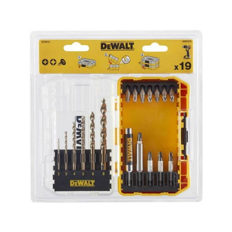 DEWALT DT70711-QZ - SET 19 PEZZI AVVITARE E FORARE METALLI et 19 pezzi avvitare e forare metalli Contenuto: 1 adattatore magnetico 1 adattatore magnetico con guida 8 inserti da 25mm: PH2 PZ2,3 3 inserti da 50mm: PH2 PZ2 6 punte Extreme metallo misure 2,3,4,5,6,8 mm Per materiale: metallo