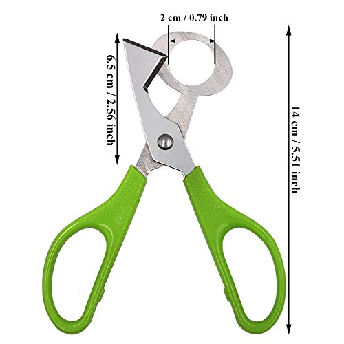 ✿ La Confezione Include: La confezione contiene 2 pezzi forbici uova di quaglia in totale, verde, la dimensione è 6 x 14 cm / 2,36 x 5,51 pollici. La taglierina per guscio d'uovo di quaglia diventerà lo strumento perfetto per tagliare facilmente i gusci.