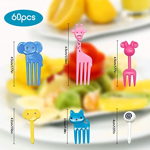 60 Pezzi Forchette Frutta Bambini Stuzzicadenti Bento in Plastica, Mini Cartoon Forchette da Frutta, Riutilizzabile, Per Antipasti Snack Torte Dolce