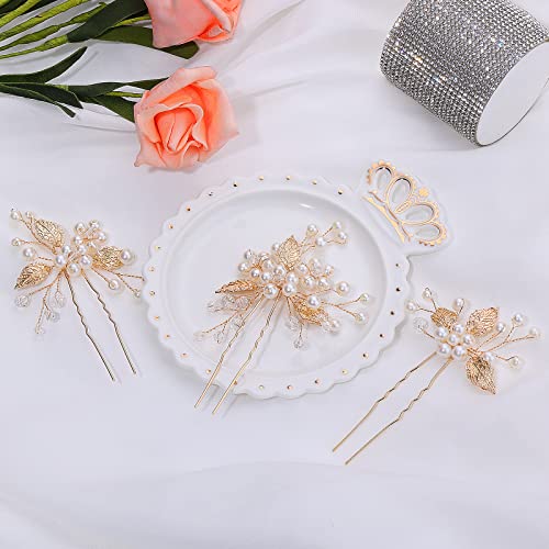 3 Pezzi Forcine per Capelli da Sposa Fiore Perla Fermaglio Capelli Sposa Lamina d'Oro Fermagli per Capelli Sposa Gemma Gioielli Strass Accessori Capelli Sposa Ragazze Fermacapelli Donna