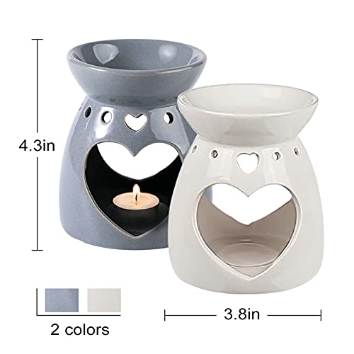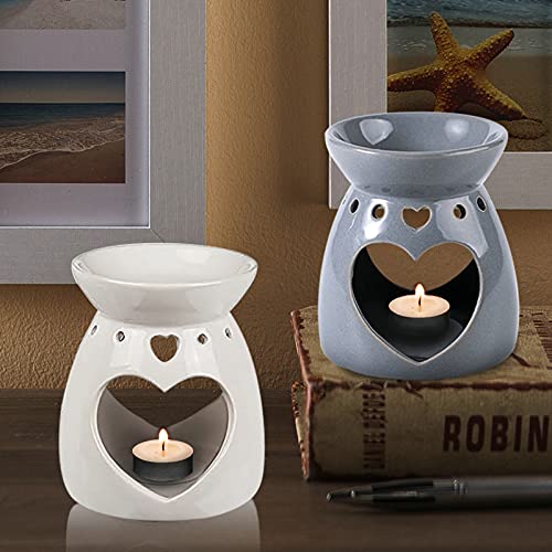 Pacchetto - 2 * Bruciatore di olio essenziale in ceramica a forma di cuore con porta tealight, Dimensioni: 4